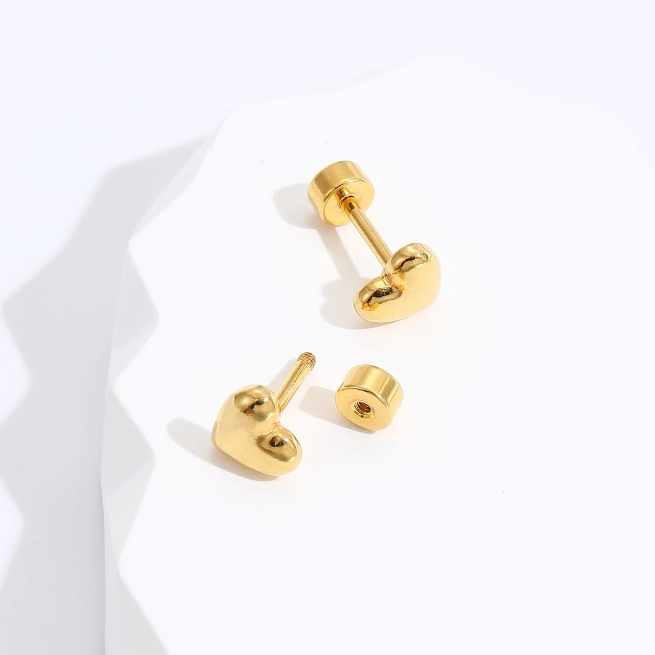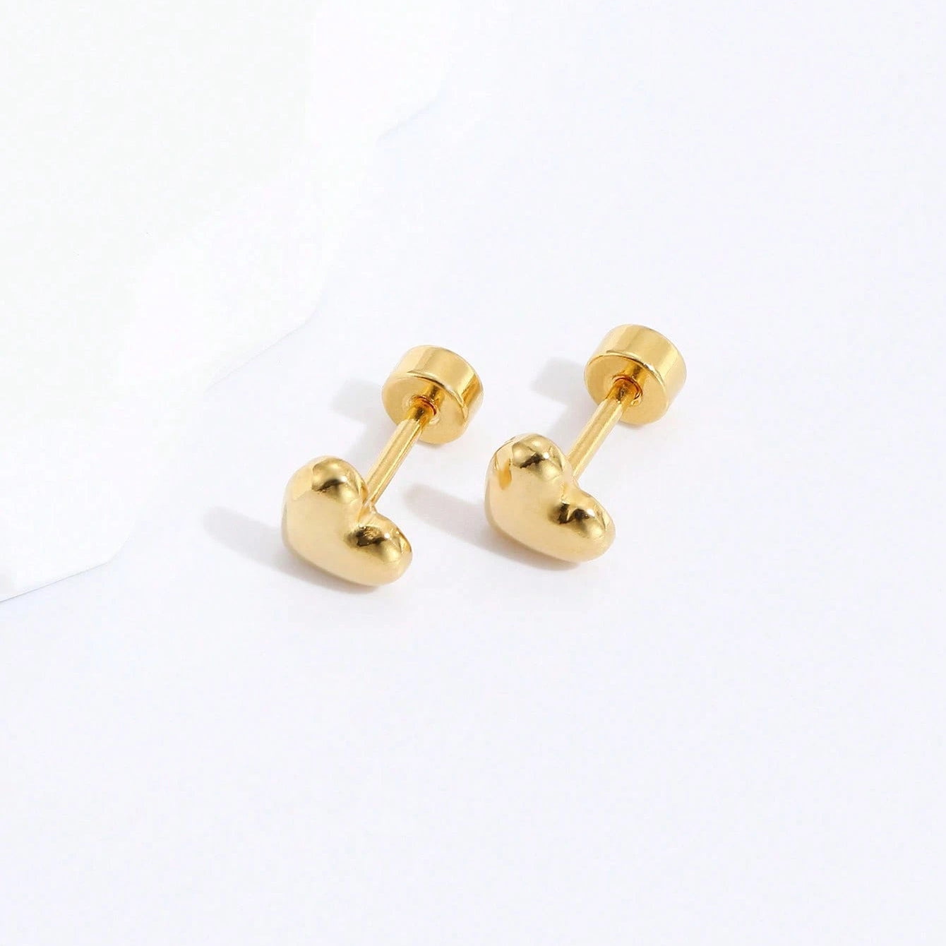 Adorable bubble heart studs designed for young ears! These flat back screw earrings feature a secure, comfortable fit that won't poke or irritate delicate skin. The playful heart design brings instant charm to any outfit, while the ouchless backing ensures all-day wear without discomfort. Perfect for girls who want fun jewelry that actually feels good.